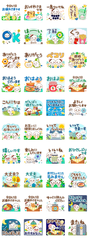 北欧風の花と食べ物多めのデザインです。よく使う言葉に丁寧語をまぜており、用途に合わせて使用いただけます。