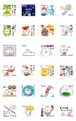 ばぁば/バァバ専用105ねことうさぎの名前スタンプ/夏スタンプ動く版/夏/熱中症/スイカ/デカ文字/猫/天気/季節/夏祭り/猛暑/初夏/暑中お見舞い/夏休み/山田まぽん作山田まぽん 新 名前スタンプ より発売