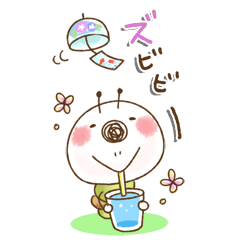 いもむし。いもぽん。シリーズ5の飛び出す版です。夏仕様♪ほんわか/ほのぼの/可愛い/ほんわか/暑い/熱中症/猛暑/ねことうさぎの名前スタンプからも友情出演。山田まぽん作