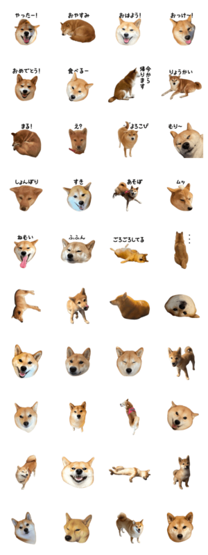 色んな笑顔や寝顔の柴犬えびちゃんのスタンプです。売上はえびちゃんのおやつ代へえび より発売