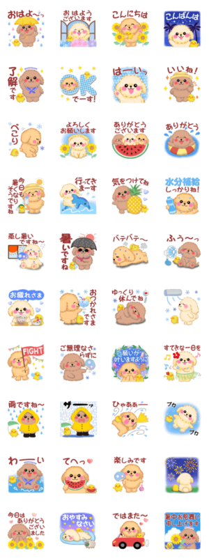 「かわいいトイプードル」の夏の日常に使えるスタンプです!めぐみん より発売