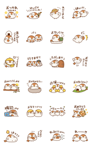ふんわりして可愛らしいスズメのアニメーションスタンプ!日常にも便利な敬語の言葉がいっぱい!