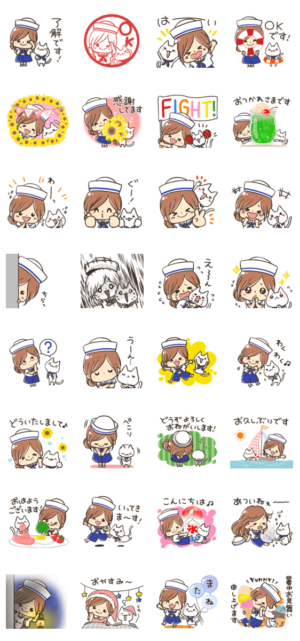元気いっぱい♫可愛い女の子と猫ちゃんの夏スタンプです。サーーーーモンの【あの子は可愛い女の子。】シリーズサーーーモン より発売