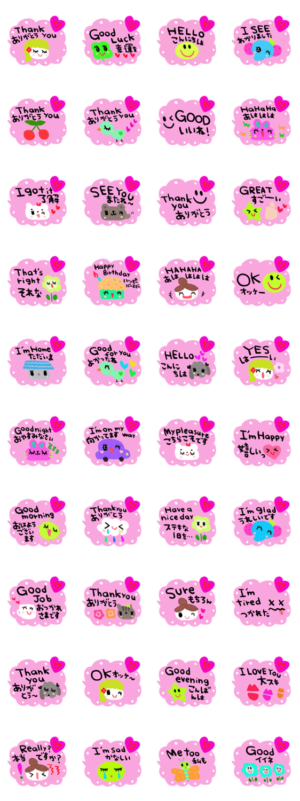 シンプルな日常会話スタンプです。日本語&英語スタンプnenerin より発売
