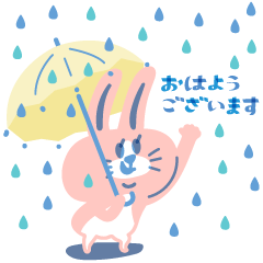 透け感マーカーペンのレトロカリグラフィーvol3。文字白縁あり/オシャレ/シンプル/梅雨/台風/合羽/初夏/ブルー/文房具/挨拶/うさぎ/karin