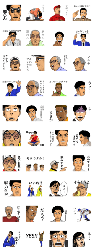 野球マンガ『ドラフトキング』公式スタンプ第一弾。作者クロマツテツロウが原稿と同じ熱量で制作し、肘を痛めたという一球入魂の至極のパワーワードスタンプ。
