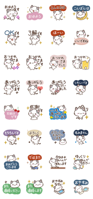 小さいブチ猫の、日常的に使える丁寧な言葉の敬語ガーリースタンプ。かわいく便利に使える北欧風ネコスタンプ。ちいさい、ぶちねこ好きな方にぜひ。【かたこ】かたこ より発売