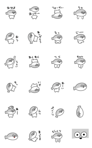 興奮してる。シュールミニさかばんばすぴすの動くスタンプです。eribo より発売