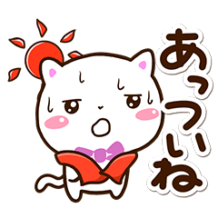 『シロネコすたんぷ』の絵文字と着せかえもあります。夏の暑い時期に使いやすい白猫スタンプです。しろねこ好きの方にぜひ。【かたこ】夏バテ、ゲリラ豪雨雷雨、スイカ、海かたこ より発売