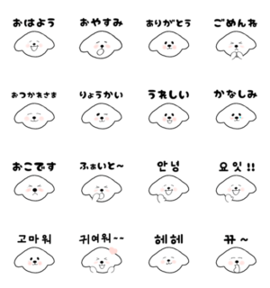 わたあめみたいなわんこのスタンプです。 表情豊かでかわいい!日常会話で使えます。 よろしくお願いします。韓国語/한국mano より発売