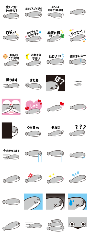 オルドビス紀に生息していたゆるいかわいい古代魚動物サカバンバスピス。家族や友達、職場・仕事に毎日使える敬語や丁寧語のシュールでシンプルな日常スタンプです♪