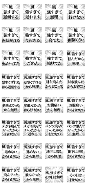 強風の言い訳【風強すぎて】 スタンプ画像一覧