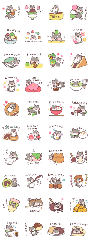ころころ柴犬 和菓子と黒柴 スタンプ画像一覧
