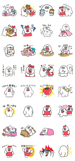 おもち&まるこのゆるい日常スタンプが登場!おやつとお昼寝は忘れずに。たまの一人時間もよろしくね。マイペースに仲良く過ごそう。おもちの光るおしり付。シリーズあり