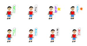 LINEスタンプメーカーでつくったスタンプです 。神太郎くんという名前をついているキャラクターです。お試し的なやつです。