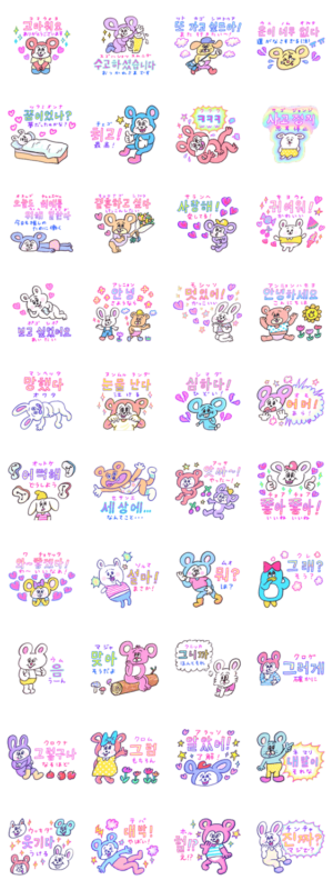 幼児体型小動物のシュールポップな韓国語スタンプです。推し活、韓流、日本語&ハングル&デカ文字イッレ・コスヤ より発売