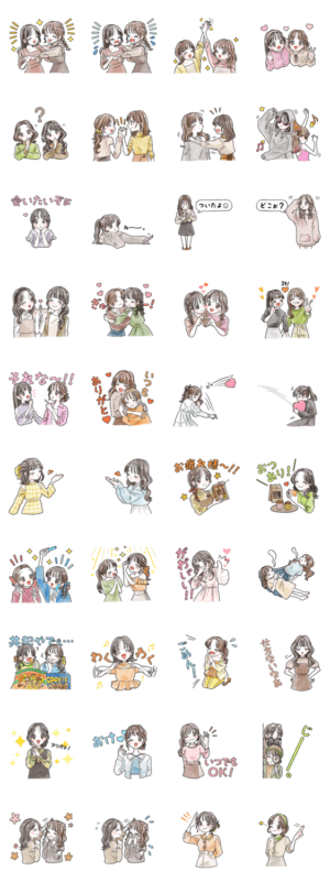 ふんわり可愛い女の子スタンプです♪日常会話多めで使いやすい♪仲良しのお友達同士で使える♪ハート/女子高生/かわいい/オシャレ/挨拶/双子/親友ほこり より発売