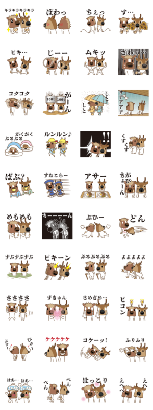 ちび馬と鹿のオノマトペスタンプです。(一部オノマトペじゃないのもありますよ)ネコビタン より発売