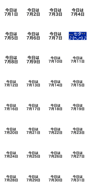 七月一日から31日まで。七夕介護職ヘルパー高齢者おじいちゃんおばあちゃんアルツハイマー認知症生存確認日にち大きい文字見やすい老眼太字毎朝お助けシンプル白黒スタンプにこにこにっこ より発売