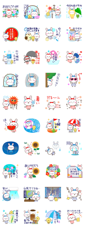 リボンうさちゃんの夏の気遣い挨拶です。梅雨の時期、暑中見舞い、残暑見舞いなどに使えます。レムリン より発売