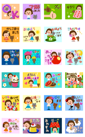 飛び出す!えがお♡女子 3 スタンプ画像一覧