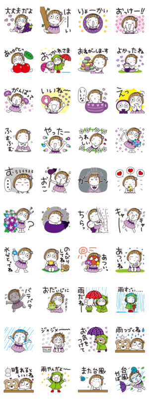 はな子✿梅雨・夏の日常ことば。台風、ゲリラ豪雨気をつけて、水分いっぱい補給しましょ。キキぷり より発売