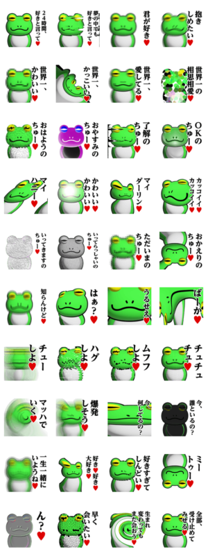 蛙化現象スタンプ/カエル/かえる/ラブラブ/大好き/毎日使える/使いやすい/挨拶/馬鹿カップル/恋人/彼氏/彼女/アベック