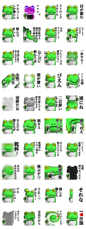 蛙化現象スタンプ/カエル/かえる/お酒/さけ/サケ/アルコール/飲酒/酒カス/ビール/日本酒/チューハイ/アル中/飲み会/酒豪/二日酔い/禁酒/ストロング/スタンプ