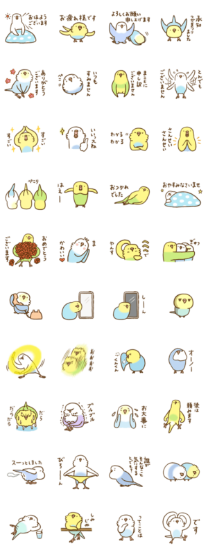 セキセイインコの日常で使えるスタンプです。毎日使えて便利です。中原じゅん子 より発売