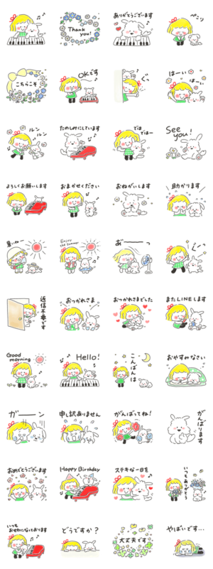ピアノや音楽が大好きな、かわいい子犬ちゃん。ピアノの先生も音大生もみんなで毎日使える敬語スタンプです。夏にもお誕生日にも使ってね!ともいろ より発売