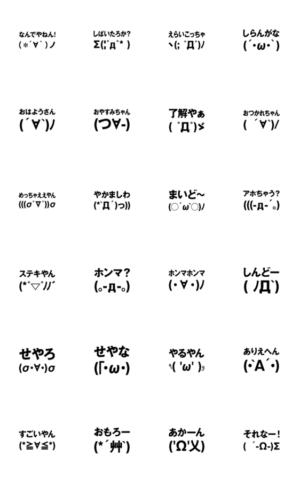 顔文字/絵文字/文字が流れる/毎日使える/日常会話/使いやすい/楽しい/家族/カップル/友達/面白い/おもしろ/挨拶/あいさつ/関西弁/大阪弁/ボケ/ツッコミ/漫才