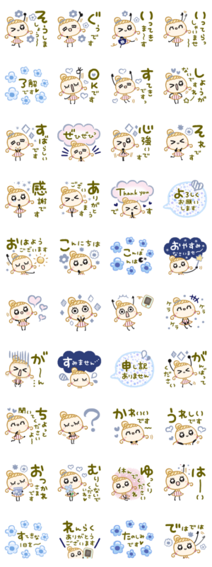 ぷくぷくほっぺのほぺ美ちゃん◎ラフな雰囲気で軽く使える、毎日の敬語スタンプです♪小さな幸せ/感謝あさごぱん より発売