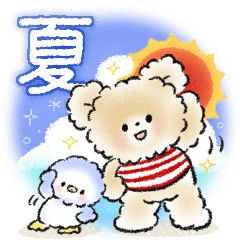ふわふわくまさんとペンギンちゃんの夏に使えるスタンプです♪誕生日、暑中見舞い、台風、熱中症、気遣い、可愛い、動物、挨拶、天気yopink より発売