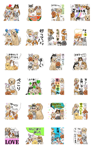 ❤️飛び出して動く可愛いたくさんの犬たち スタンプ画像一覧