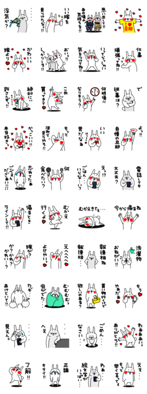 全力でうざい全力でおちょくるあざとかわいいうさぎの嫁(ママ・お母さん)が愛する夫・旦那・主人・お父さん・パパ・パートナーに送る日常使いのデカ文字便利スタンプ。