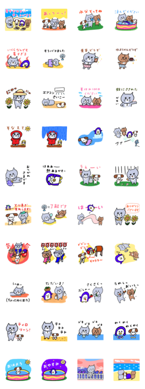 【夏】灰色キャットのわくわくサマー スタンプ情報