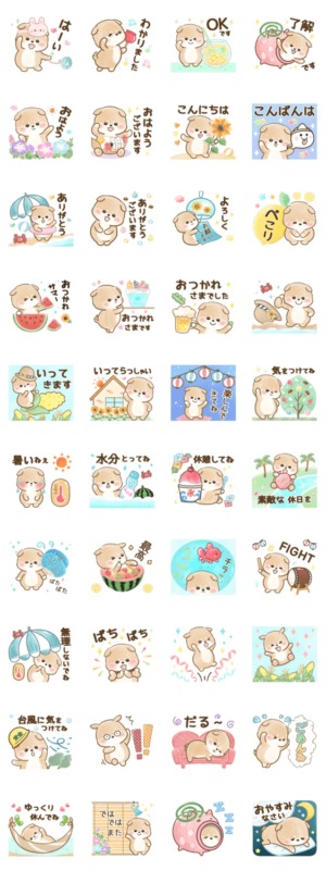 毎日使える気づかいワンコ「わんチャイ」の夏のスタンプです。日常・犬・シンプル・癒し・キュート・挨拶・台風・祭りちゃとらん より発売