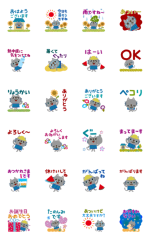 絵本みたいな*動く*ちびねこ夏スタンプ スタンプ画像一覧