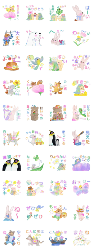 絵本作家Rokoが、水彩で描くかわいい仲間。会話の中に「あいづち」で思いを伝える。かわいい動物で癒やされるスタンプです。