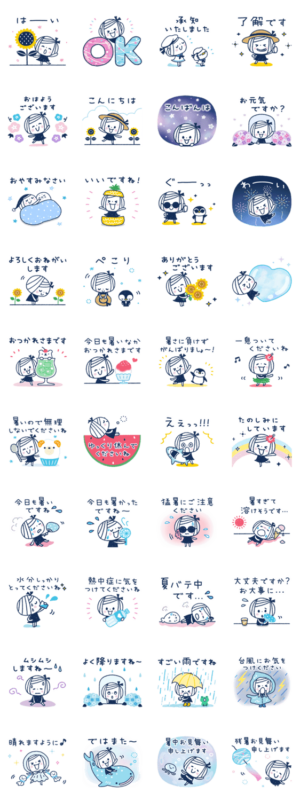 【敬語】夏の日常♡ゆるボブGIRL スタンプ画像一覧