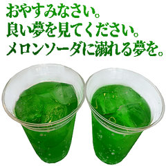 敬語を使うメロンソーダのスタンプです。暑い夏には冷えたメロンソーダが一番です。水分補給、熱中症、ジュース、炭酸飲料、丁寧語、毎日使える。実写・写真飲み物スタンプ竹野チコ より発売