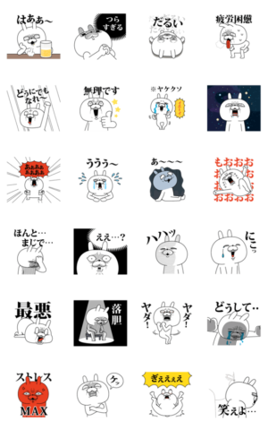 感情が高ぶりすぎてすごい顔になってしまったウサギのネガティブポップアップスタンプ☆辛さ、怒り、言葉にならない叫びなどを面白く表現しよう!