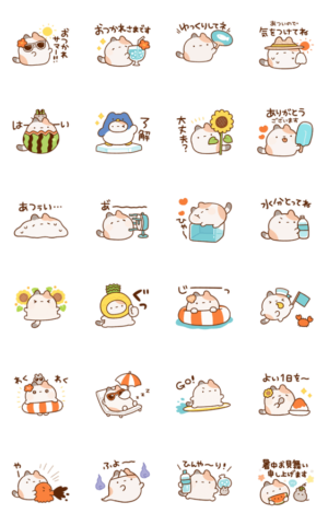 わがままボディな可愛い『ずんどうネコ』のアニメーションスタンプ第13弾!夏にぴったりなモチーフや気づかい言葉もたくさんあるよ♪
