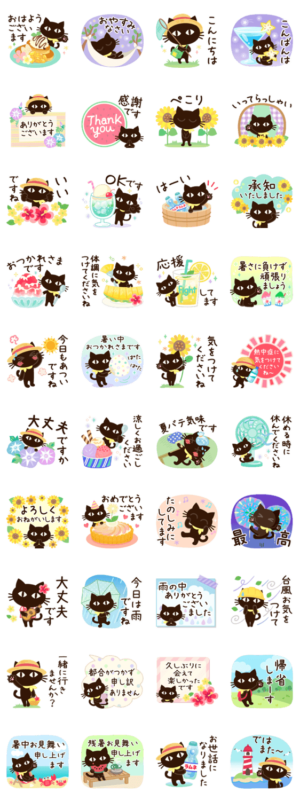 【丁寧】大人の黒ねこ×Summer スタンプ情報