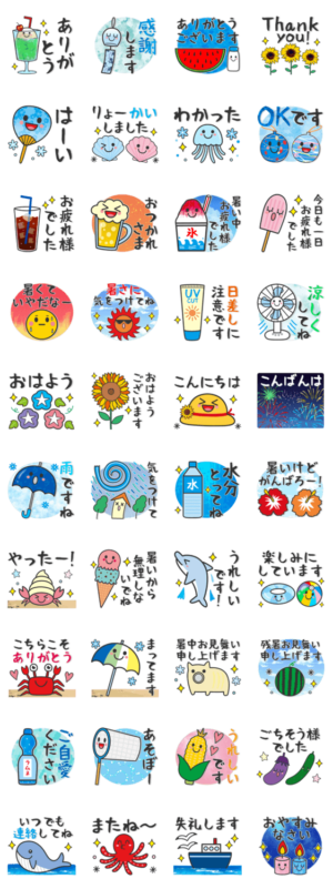 暑い夏にぴったりな、毎日スタンプです。誰でも使いやすい、シンプルな内容になっています。HRYs より発売