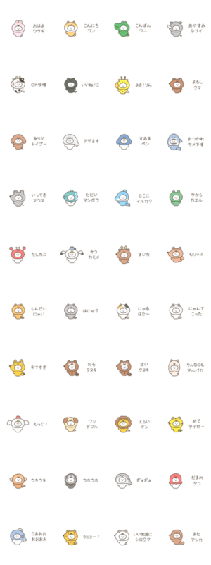 着ぐるみちゃん(動物ダジャレ) スタンプ画像一覧