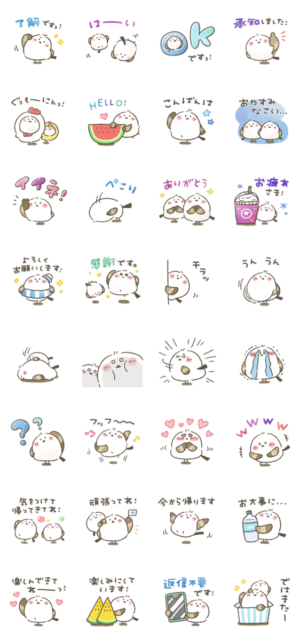 新キャラ!シマエナガという鳥さんのスタンプです。夏におすすめ!かなぴ より発売