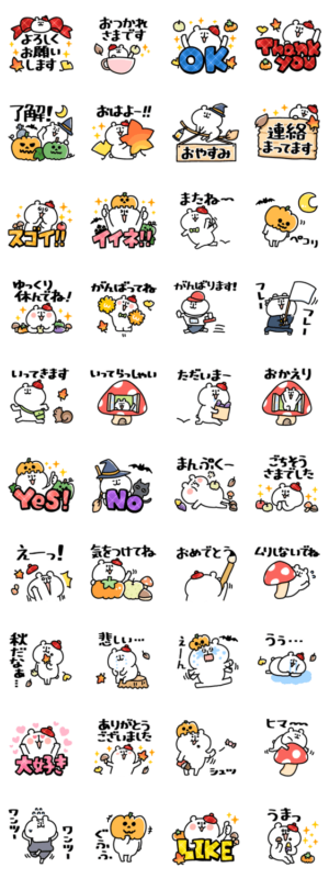 ハロウィン、紅葉、スポーツ等秋を満喫するゆるくまさんスタンプ!my より発売