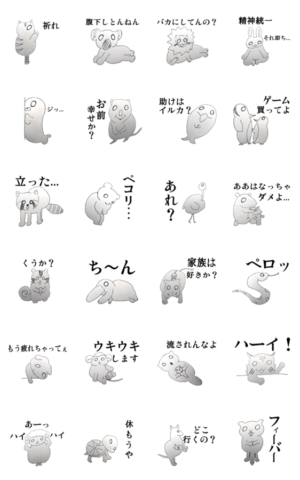 私の落書きから生まれた、ちょっぴり癖のある動物たちのとってもかわいいスタンプです。 癖があるのは絵柄の方かもしれません。ちろ より発売