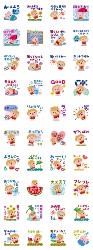 うさイチゴの夏に使えるスタンプです♥ 日常会話に使いやすい言葉を集めました!KAKKOBOX より発売